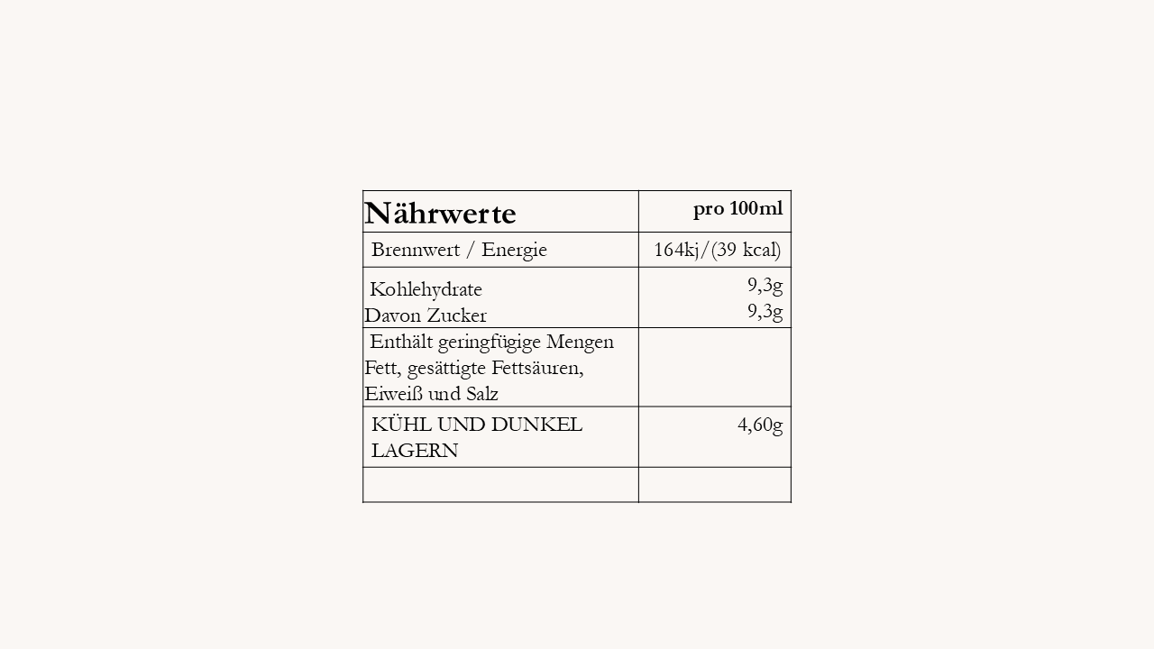 Zutaten: 55% Hollerblütenextrakt, Zucker, Säuerungsmittel: Citronensäure, natürliches Aroma